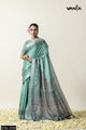 Grey and Off-White Elephant Print Handloom Cotton Silk Saree with Mirror Work Designer Blouse
