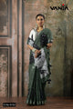 Style this saree with oxidized silver jewellery, such as a statement choker and chunky earrings, to complement the mirror work. A messy bun adorned with a flower and a stack of bangles will enhance its relaxed, festive vibe.