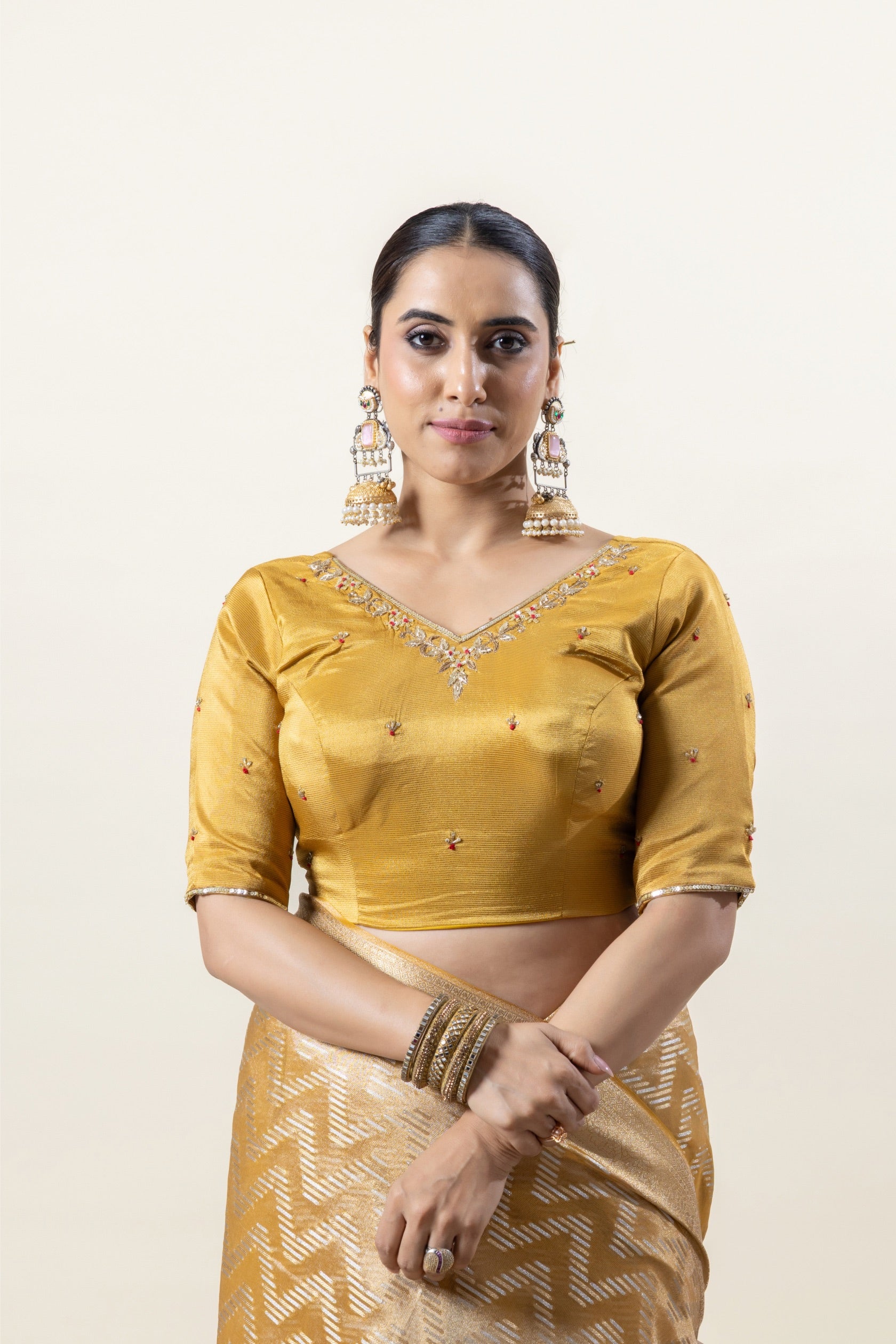 Blouse Type Readymade, Padded, with Hand-Embroidered Neckline